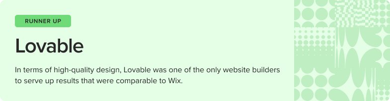 Lovable delivered us a working homepage prototype in about five minutes. It asks AI-powered questions to adjust things like layout and theme, and is highly responsive. The downside? Although the homepage was functional, building out the site map and subpages demanded lots of reworking and AI editing.