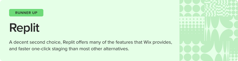 Replit can integrate with tools for design and development and various third-party apps, but it lacks marketing integrations. It also falls behind Wix in terms of reporting, as it doesn’t yet feature built-in analytics (although a beta feature is coming soon).