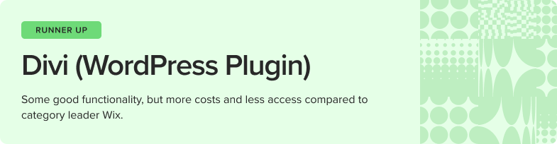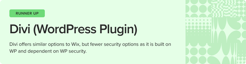 Like Wix, Divi offers 24/7 live chat support, starting with AI as the first step, and proceeding to a human agent. Average response time is relatively quick (around 15 minutes). When initial troubleshooting doesn’t work, the issue is escalated quickly to a dev team member, and pro plans get VIP support. The down side is that Divi doesn’t offer its own security solutions and relies on the extensive security WordPress already provides via the built-in Jetpack plug-in that detects attacks and spam. To take advantage of Divi AI, our persona would need to pay for a WP Business Plan ($33/month) and a Divi Pro Plan ($28/month), increasing costs a little.